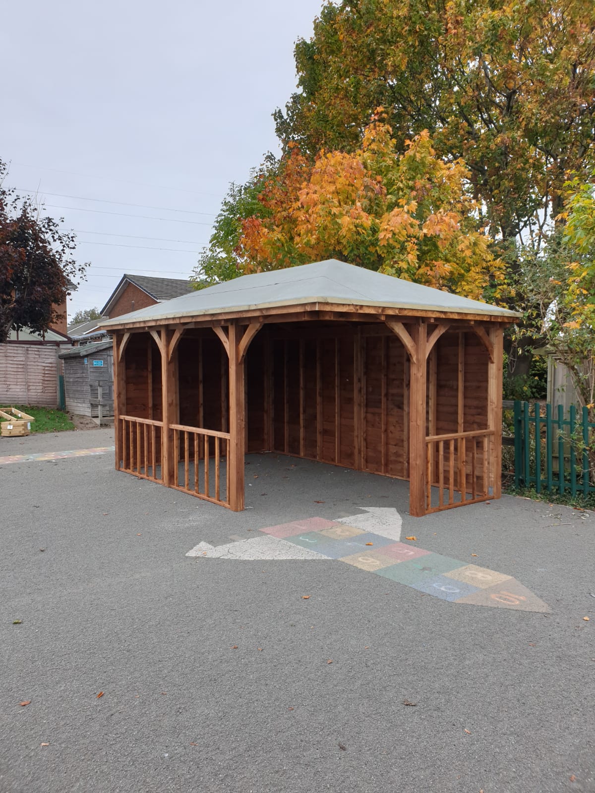 This wonderful space was donated by The Noel Sweeney Foundation, part of the Tara Group based in Burntwood, who have generously supported our school by providing the building. It will be used for Forest School sessions, outdoor play, and as a shelter for teachers and their classes during outdoor learning.