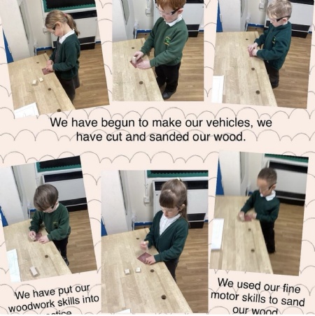 Reception class have made a fantastic start to their woodwork sessions as they begin creating their very own vehicles. The children have been learning how to safely use real tools, starting with cutting the wood to the correct size and then sanding it smooth.