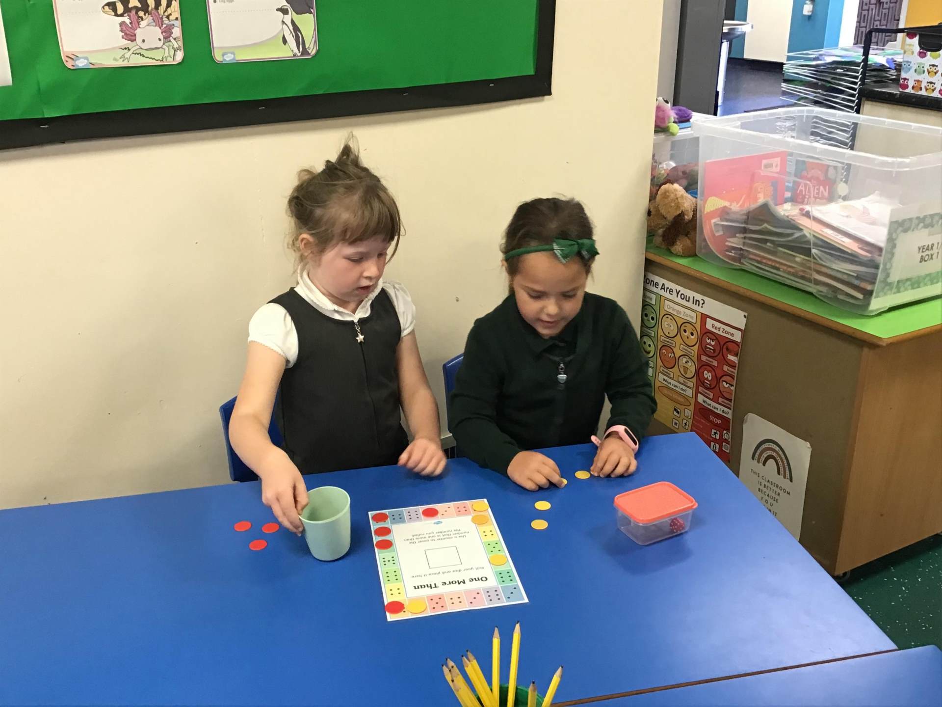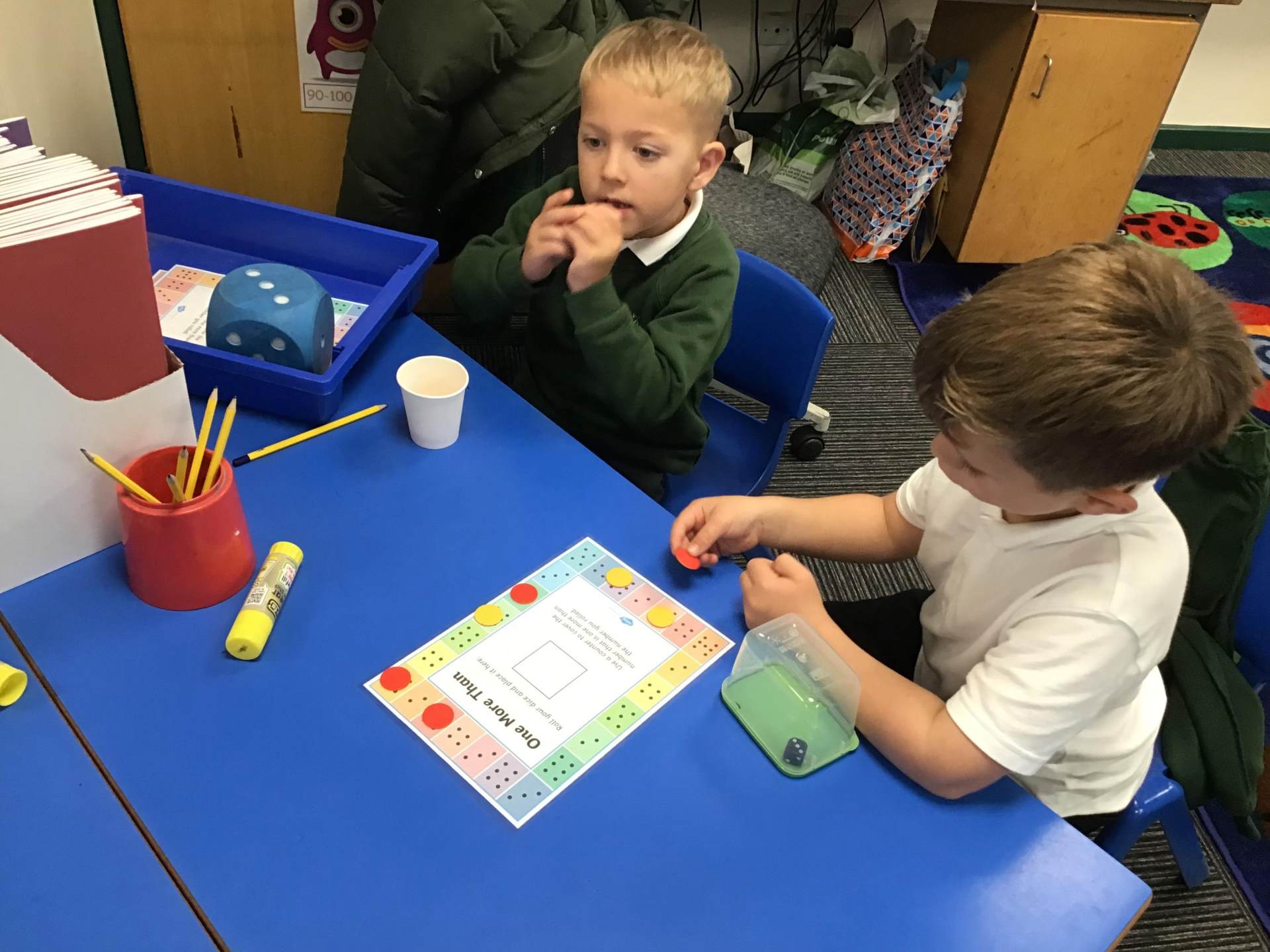 This week in Maths, our Year 1 pupils enjoyed a fun and interactive lesson focused on the concept of one more and one less. Using dice and counters, the children played a partner game where they took turns rolling the dice, creating numbers, and then identifying one more or one less.