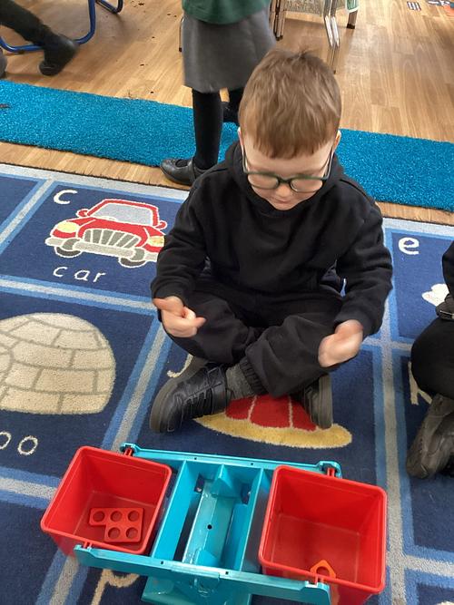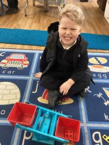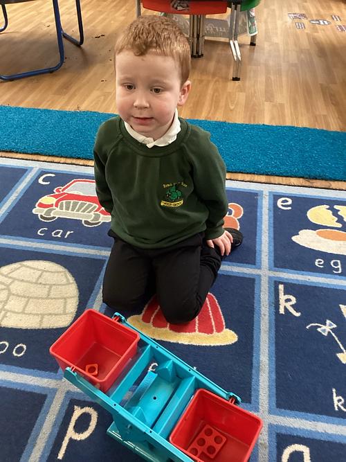 Every week the children learn a nursery rhyme and build up their repertoire of songs. They then build on this by listening to sounds, making voice sounds, rhyming, odd one out and alliteration games.