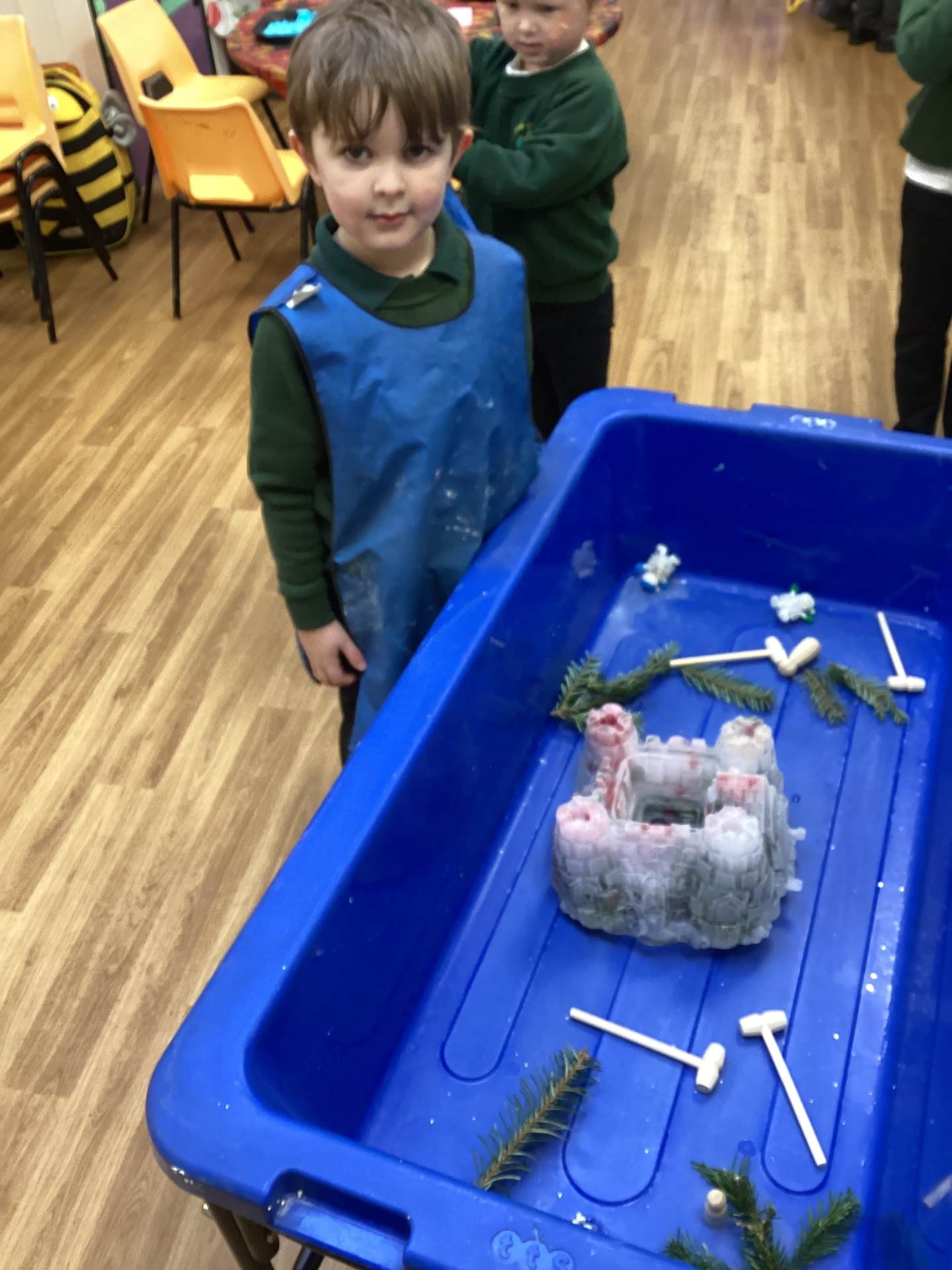 This week in Reception, the children stepped into a winter wonderland as they explored an exciting ice castle! There was awe and curiosity everywhere as the children investigated frozen branches, icy tree needles and sparkling blocks of ice.