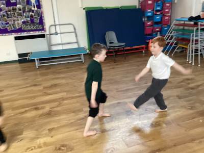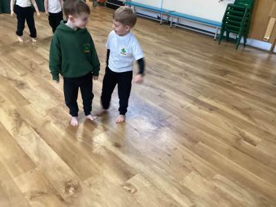 On a Thursday morning, we take part in our indoor P.E. Lesson which takes place in the school hall, we are currently focusing on fundamental movements and thinking about different high and low movements our body can create. We are very lucky to have a sports coach to teach our outdoor P.E. On a Wednesday afternoon, we are currently looking at working together as a team.